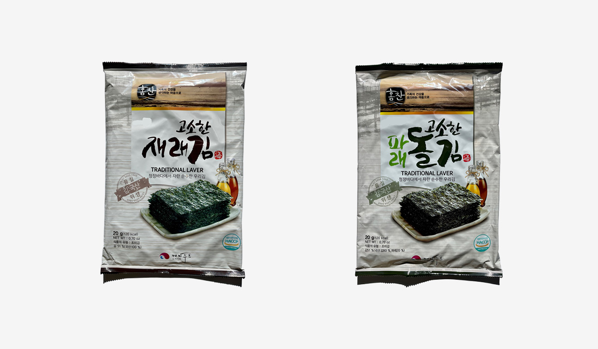 김(국산) 51%, 옥배유(수입산) 44%, 참기름, 정제염